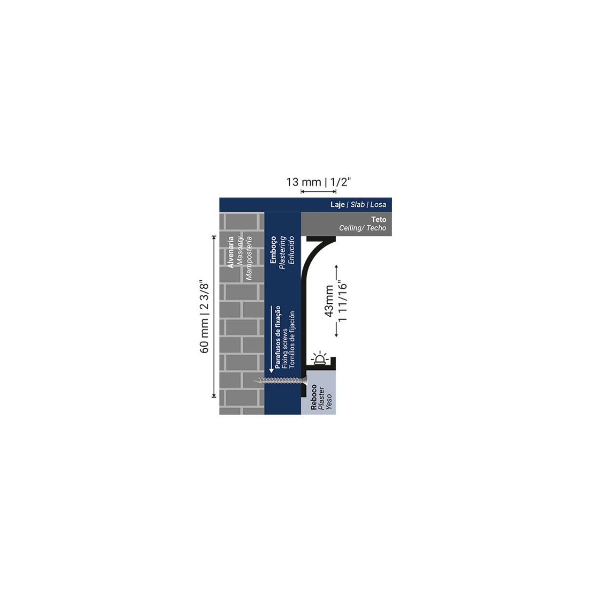 O rodapé Neo Curvo da Santa Luzia é fabricado em alumínio com acabamento preto e integra a Coleção NEO. Suas barras possuem comprimento padrão de 3,00 metros lineares, com dimensões de 6,0 centímetros de altura e 1,3 centímetros de espessura. Seu design curvo proporciona um acabamento sofisticado e moderno, além de auxiliar na ocultação da junta de dilatação dos pisos. Indicado para uso em espaços internos, pode ser instalado em paredes de alvenaria e contrapisos que recebem revestimentos cerâmicos, como porcelanatos.