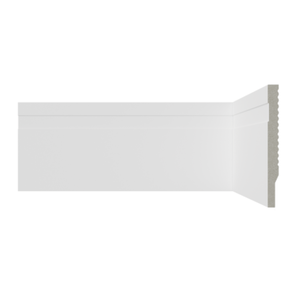 O rodapé tem a cor branca em seu acabamento e sua matéria-prima é chamada de poliestireno conhecido também como EPS.