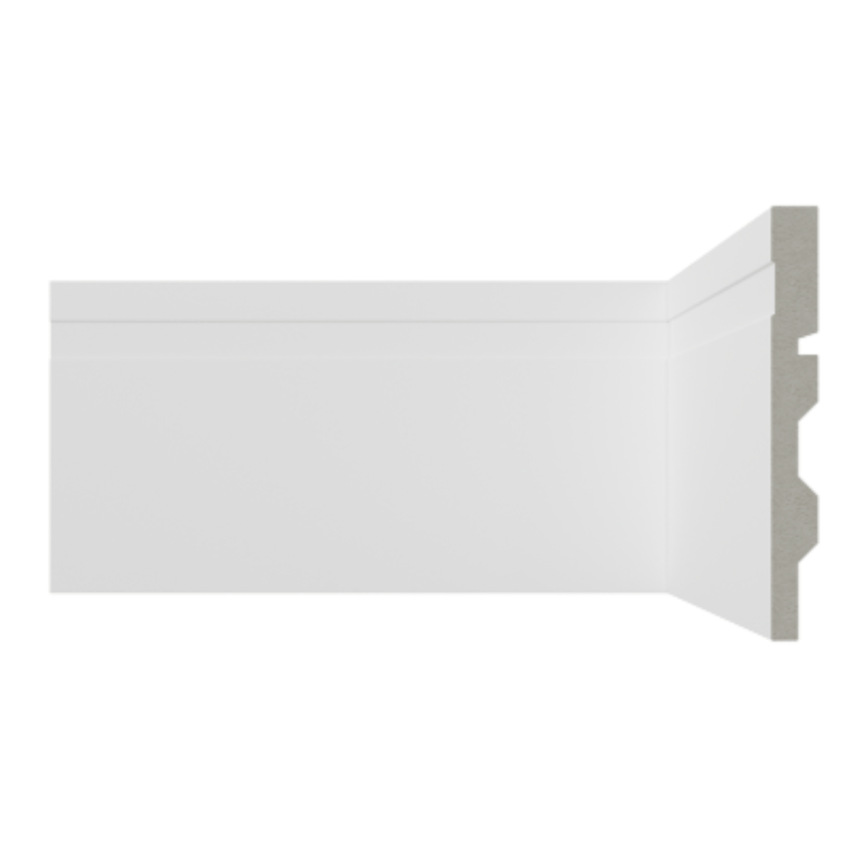 O rodapé tem a cor branca em seu acabamento e sua matéria-prima é chamada de poliestireno conhecido também como EPS.
