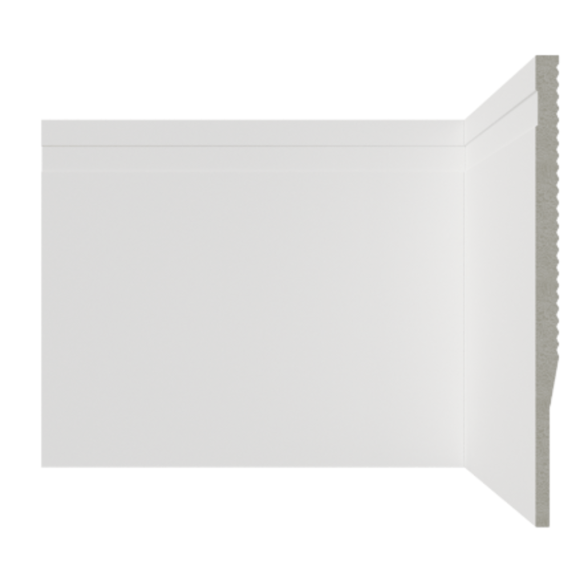 O rodapé tem a cor branca em seu acabamento e sua matéria-prima é chamada de poliestireno conhecido também como EPS.